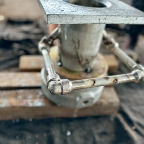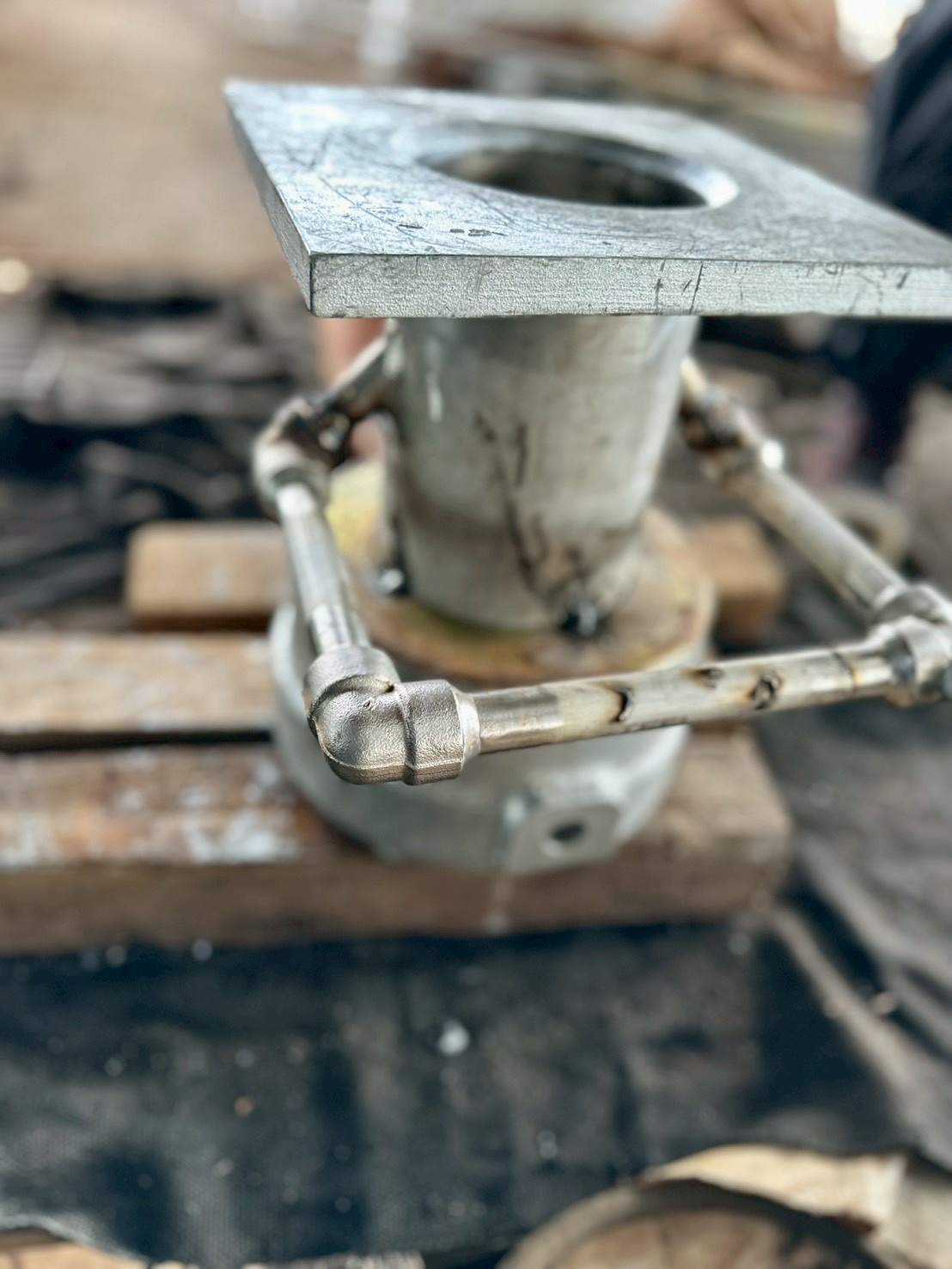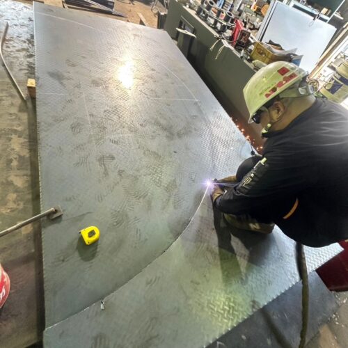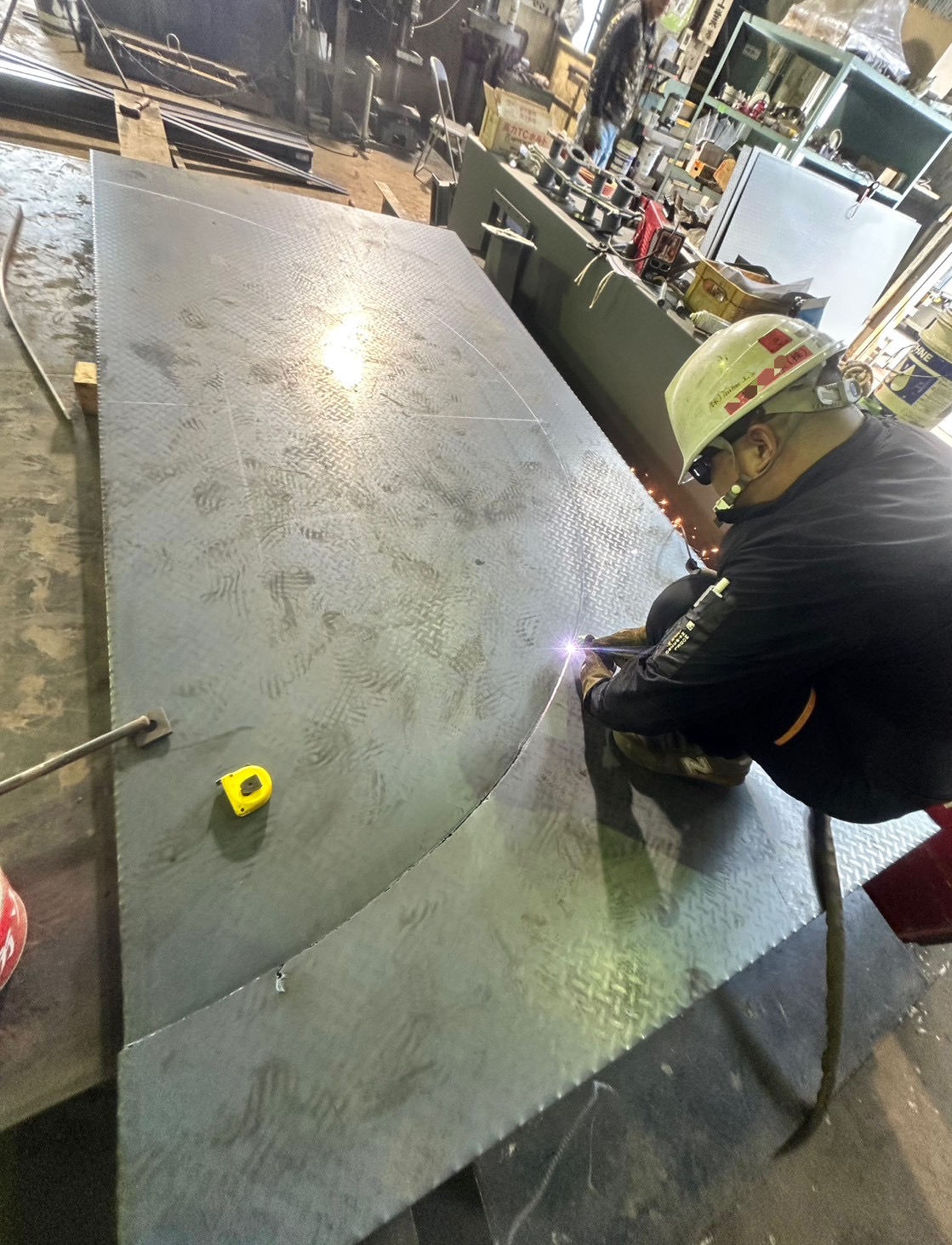 例えば、穴が空いたり錆びたり、腐敗した部分を鉄板や鉄骨材を使って溶接し、組み上げていきます。